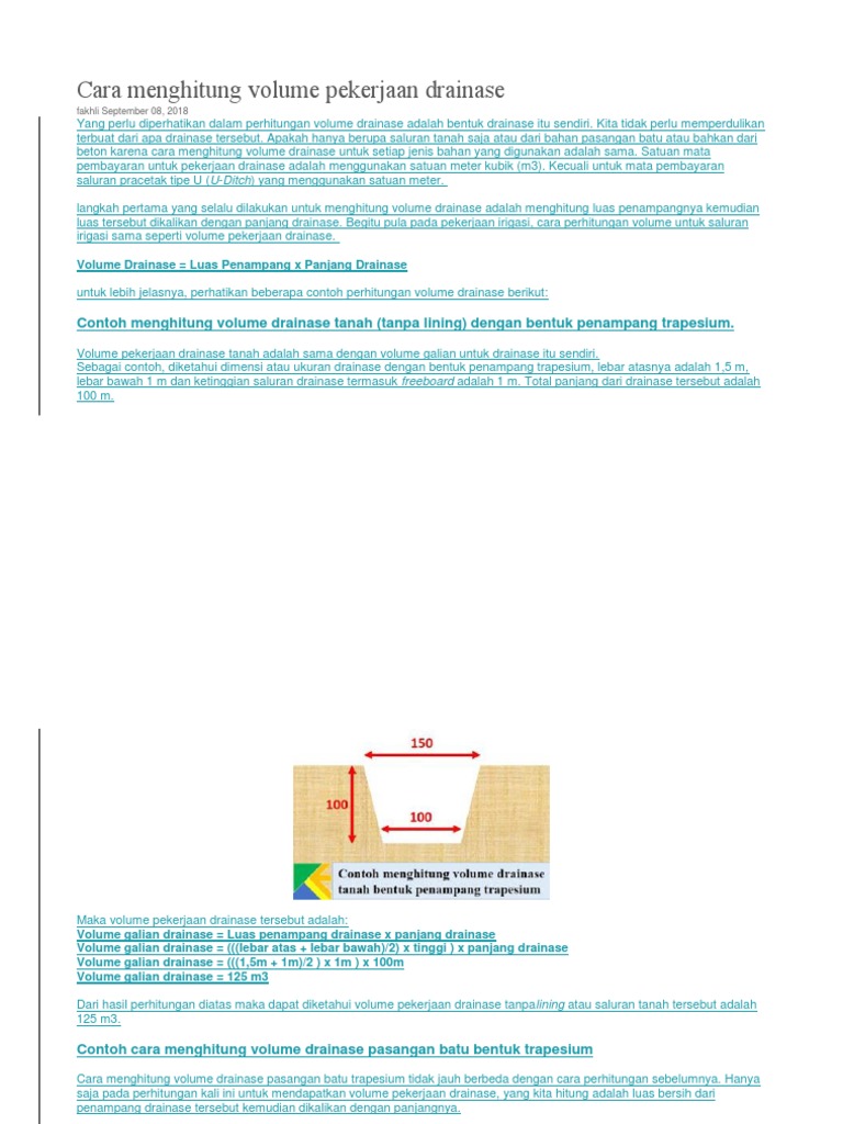 Caranya bisa dilihat DISINI dengan asumsi Volume Saluran Parit Lama Volume Timbunan. Saluran tanah tanpa pasangan saluran pasangan terowongan dan saluran tertutup data perencanaan pembuang dan perencanaan saluran pembuang.